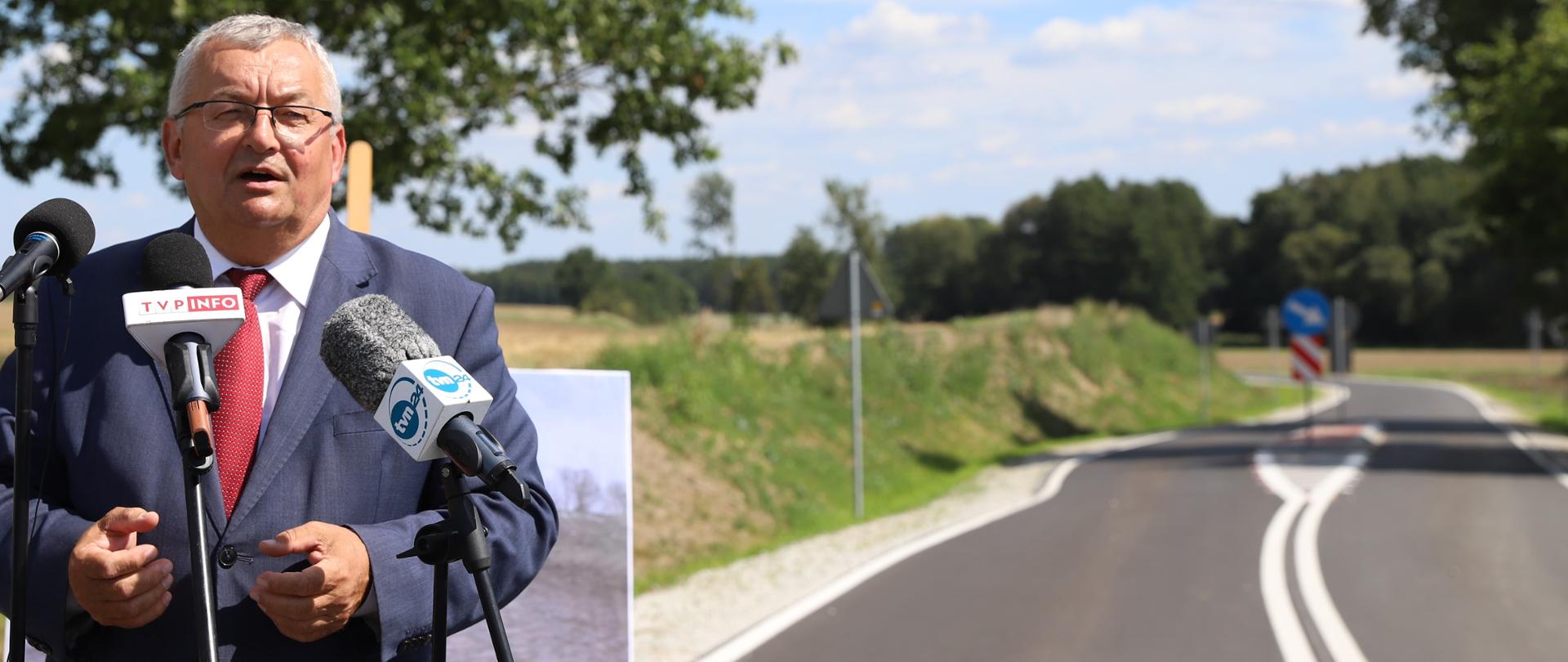 Minister A. Adamczyk podkreślił znaczenie rządowego wsparcia dla lokalnych inwestycji oraz ważną rolę samorządów, które zabiegają o to, żeby drogi gminne i powiatowe były bezpieczniejsze.